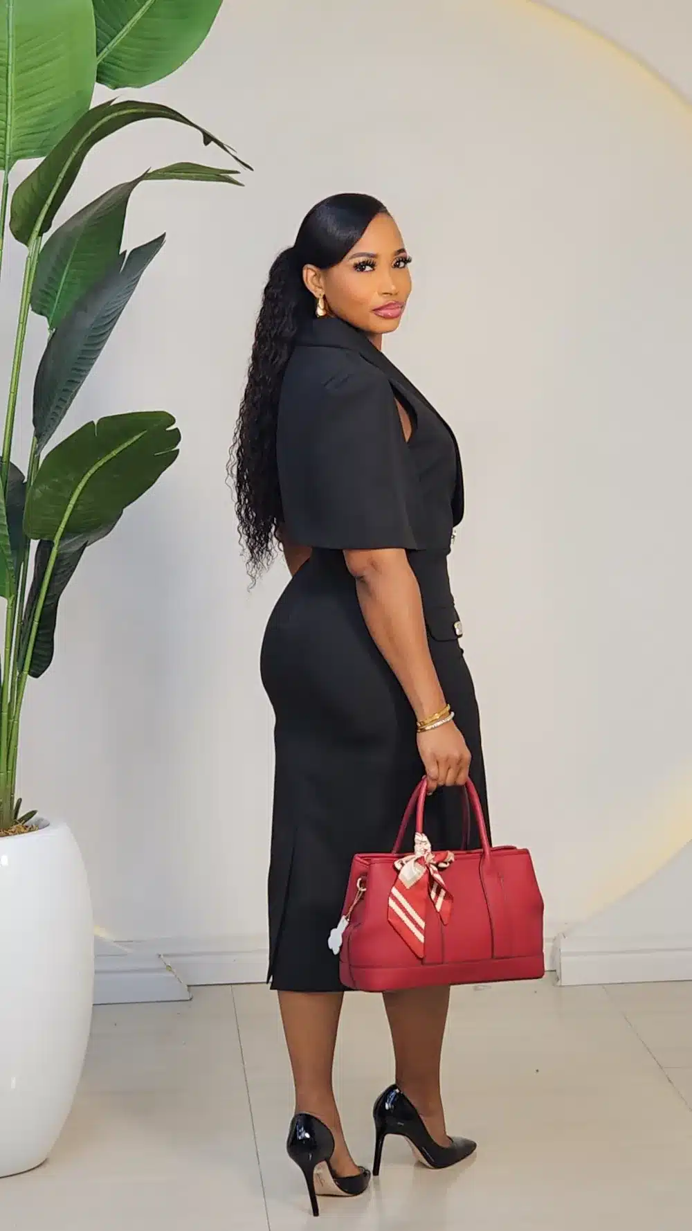 BACK CAPE BUTTON MIDI DRESS LB61