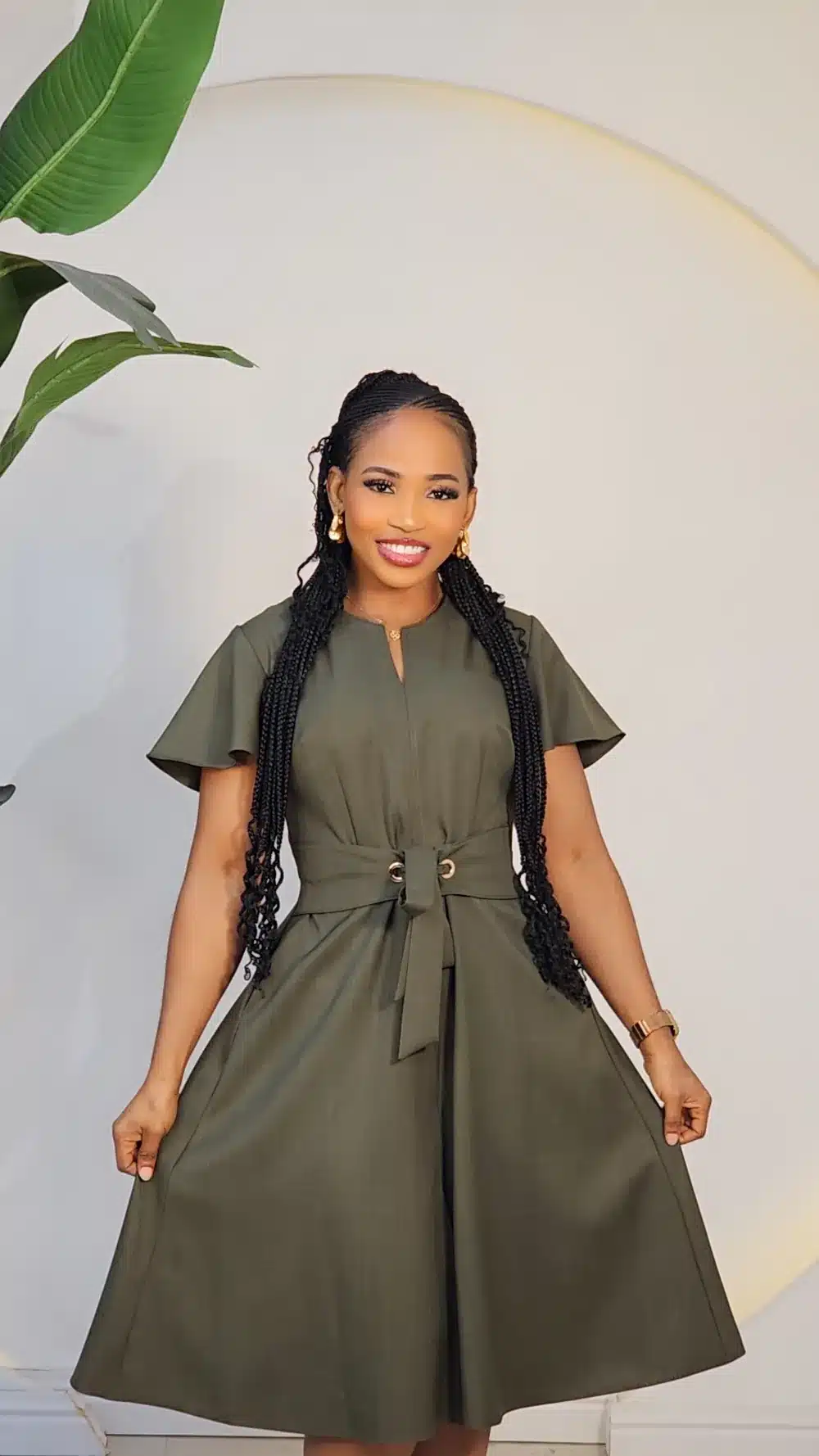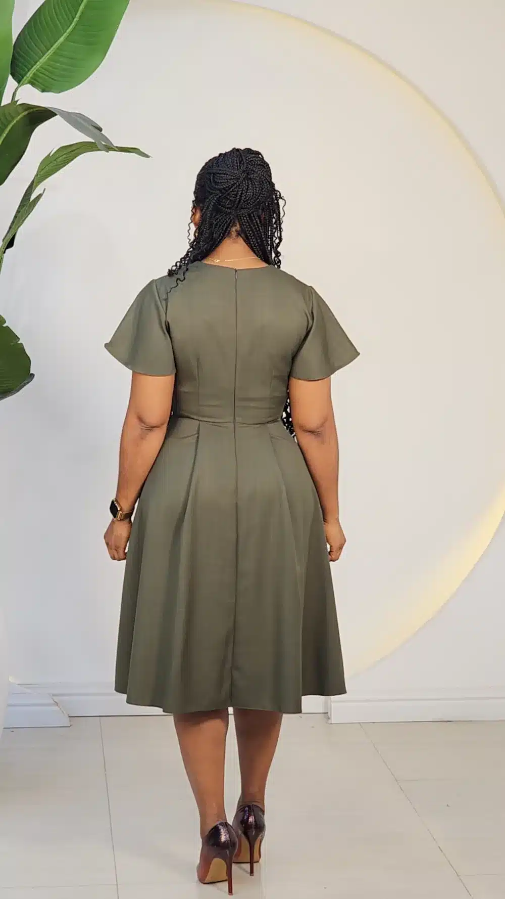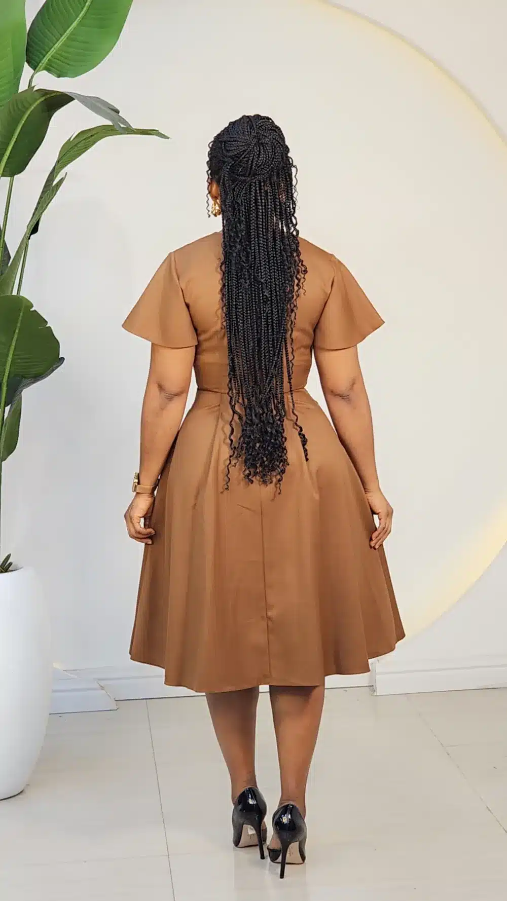 BAT SLEEVE FLARE BELTED DRESS 6397