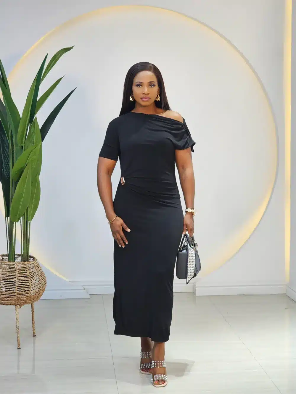 BROOCH SHOULDER SIDE CUT BODYCON DRESS