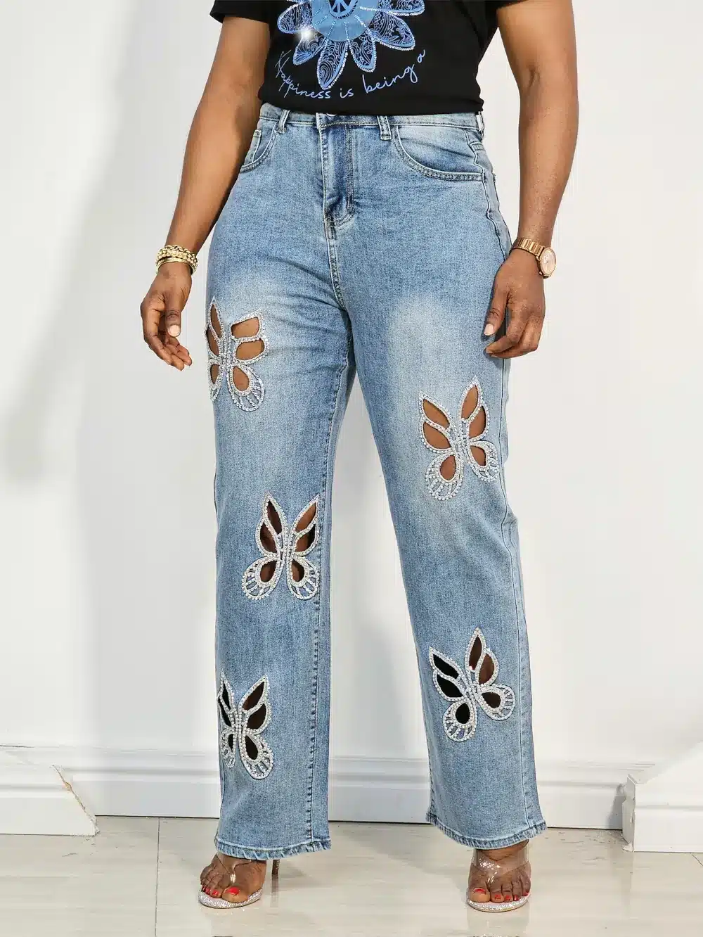 BUTTERFLY STUDDED ANKLE JEANS