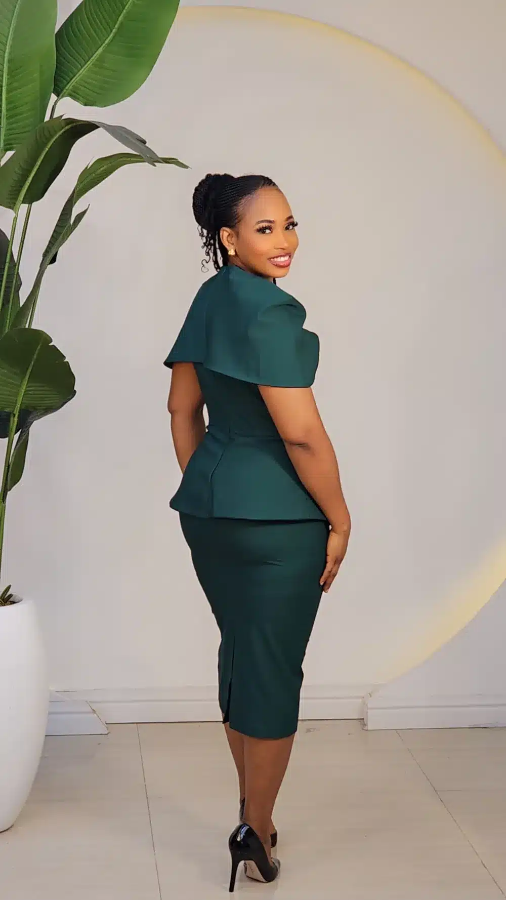 CAPE CHEST BUTTON PEPLUM MIDI DRESS L728