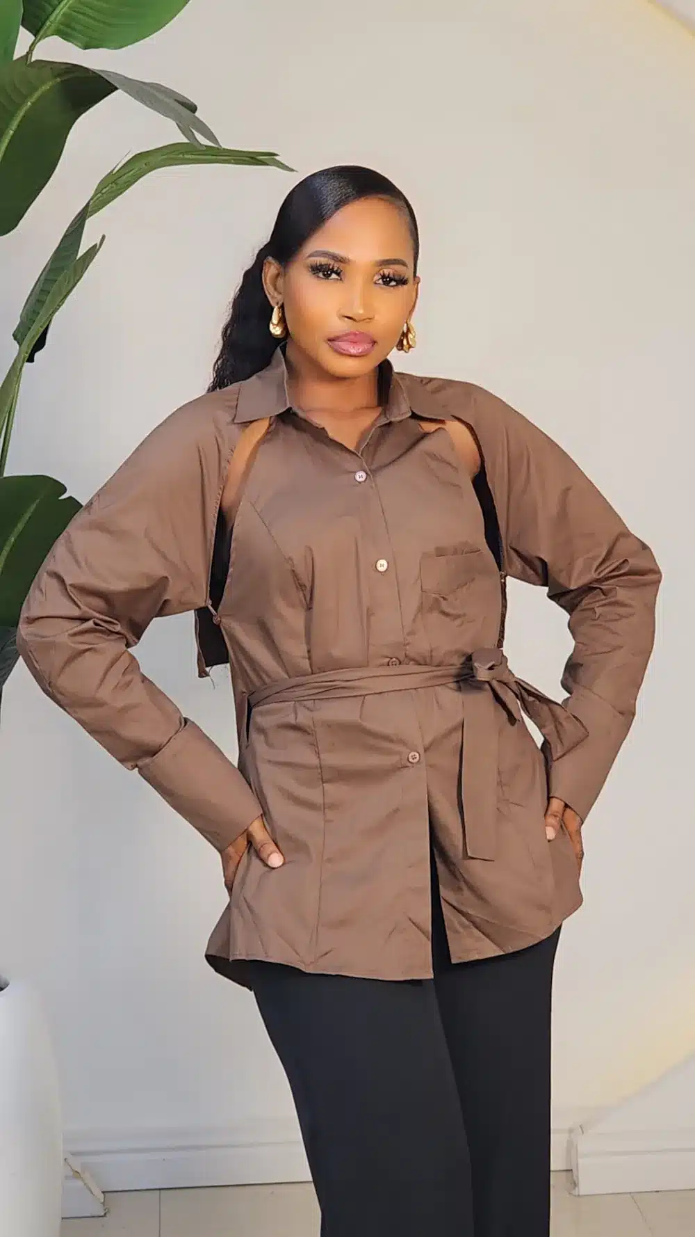 CUT OUT SHOULDER KNOT BACK SHIRT 25100