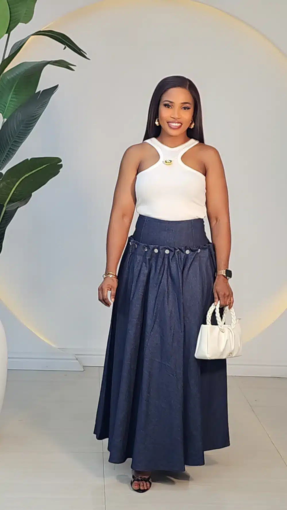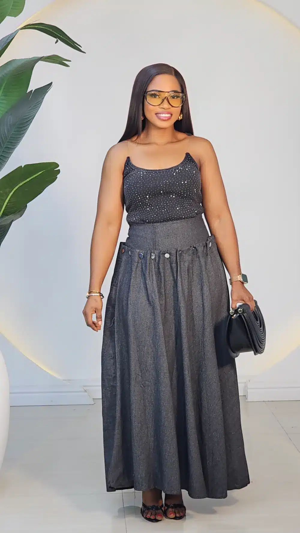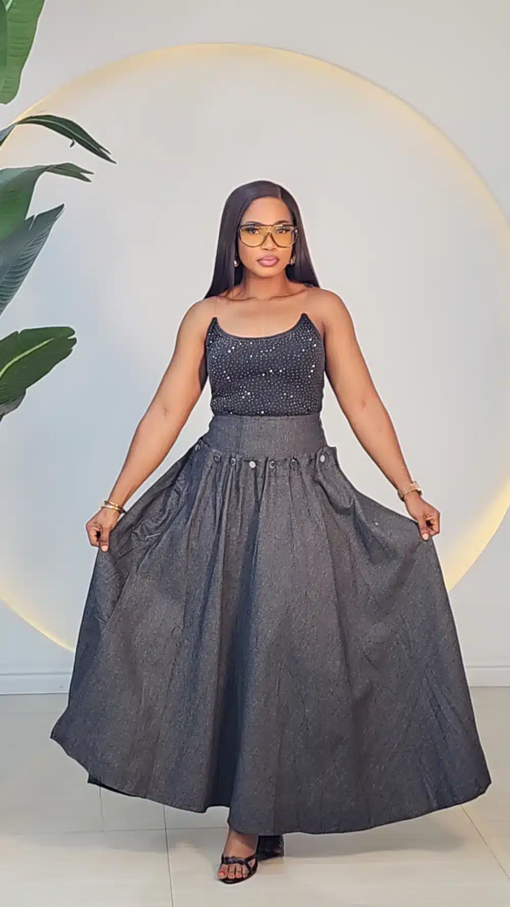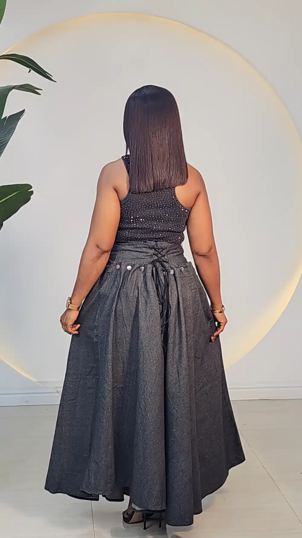 DENIM BACK LACE UP MAXI SKIRT 7772