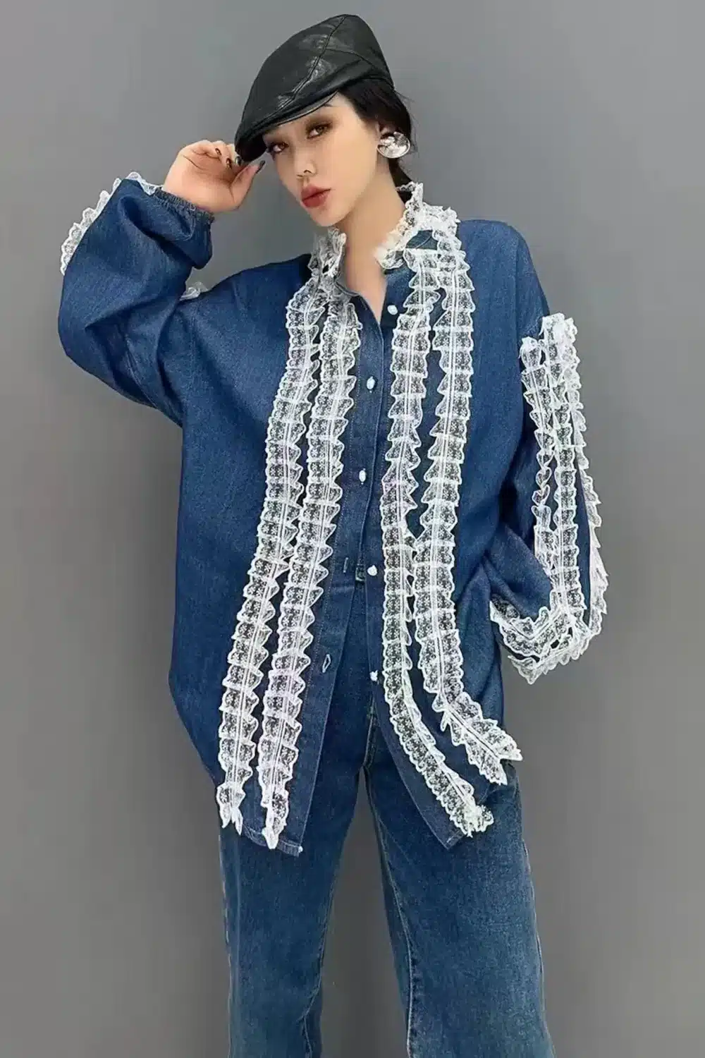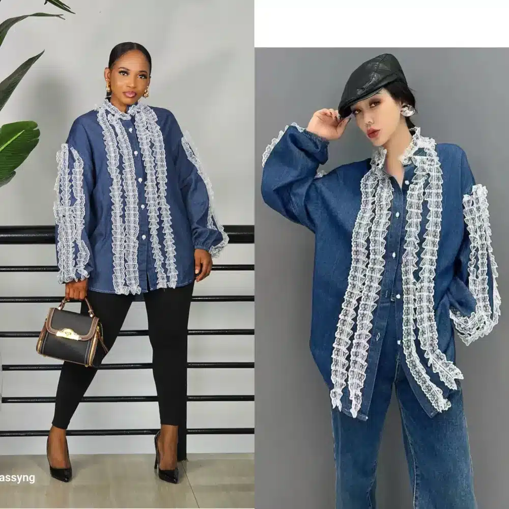 DENIM WHITE RUFFLE DETAIL SHIRT
