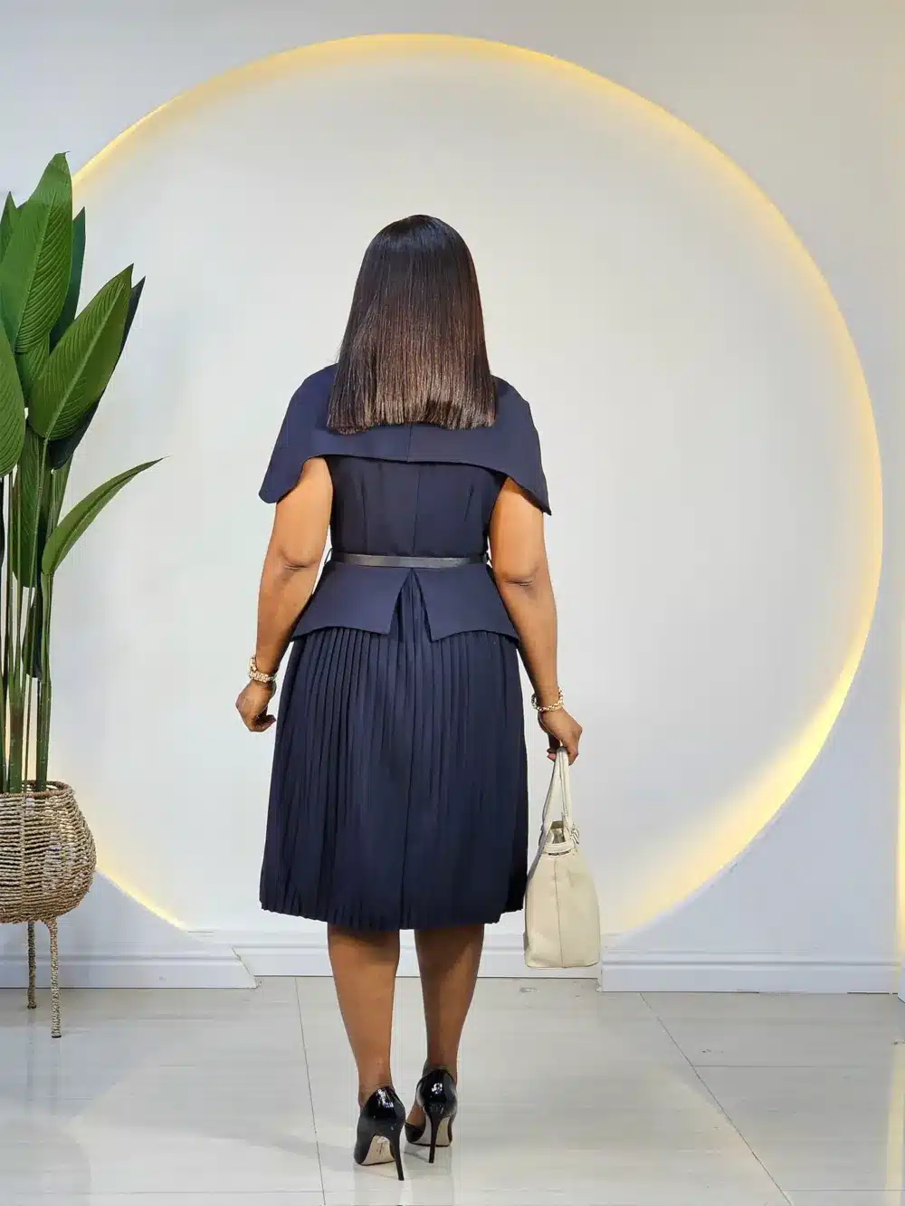 DETACHABLE CAPE PLEATED DRESS