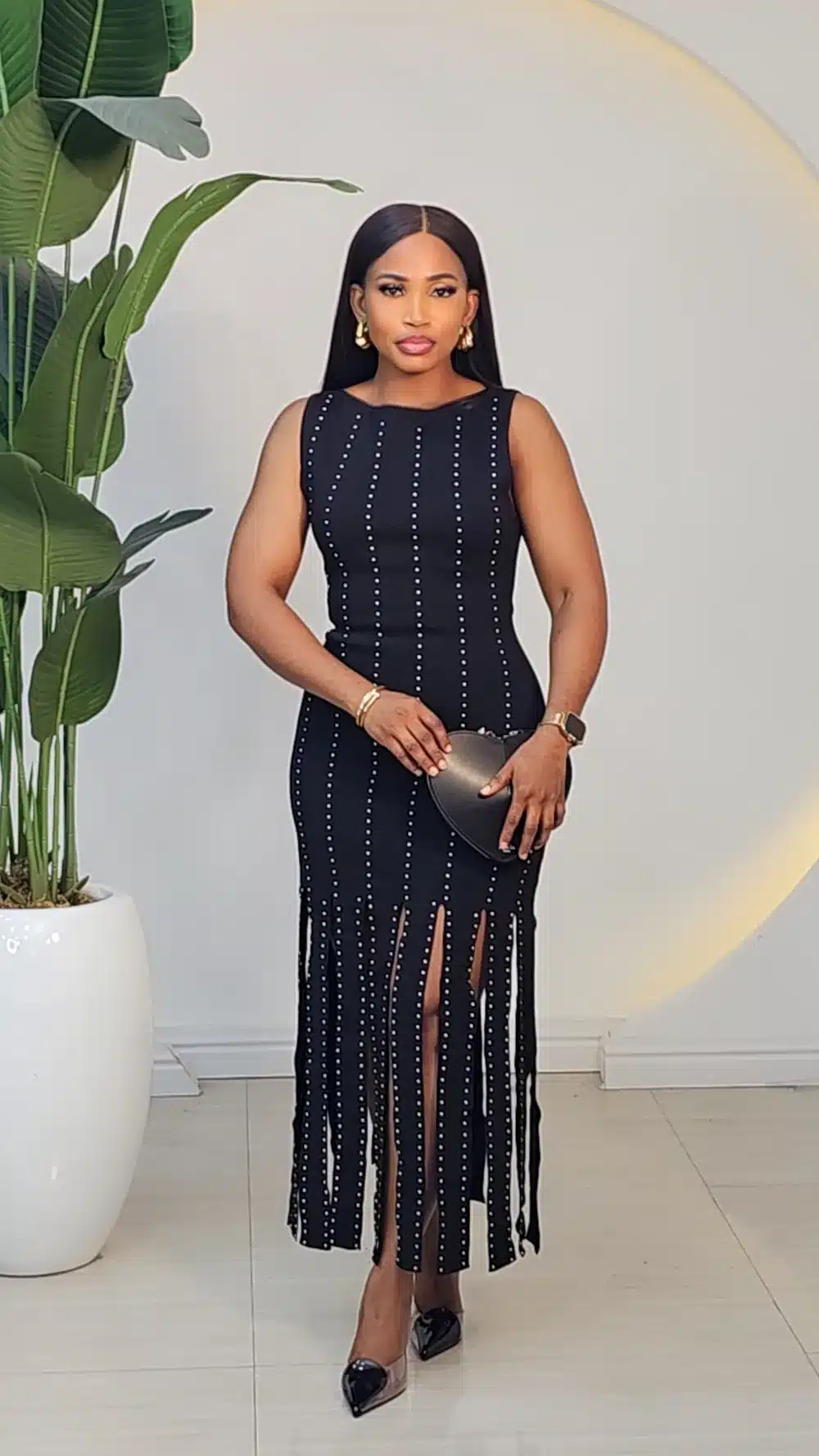 FRINGE BANDAGE PEARL TRIM DRESS 2911