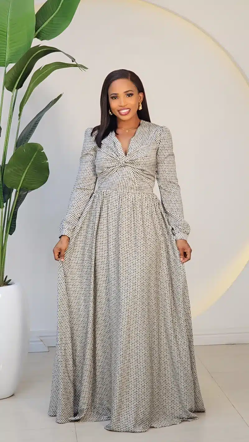 FRONT BOW DOT MAXI DRESS