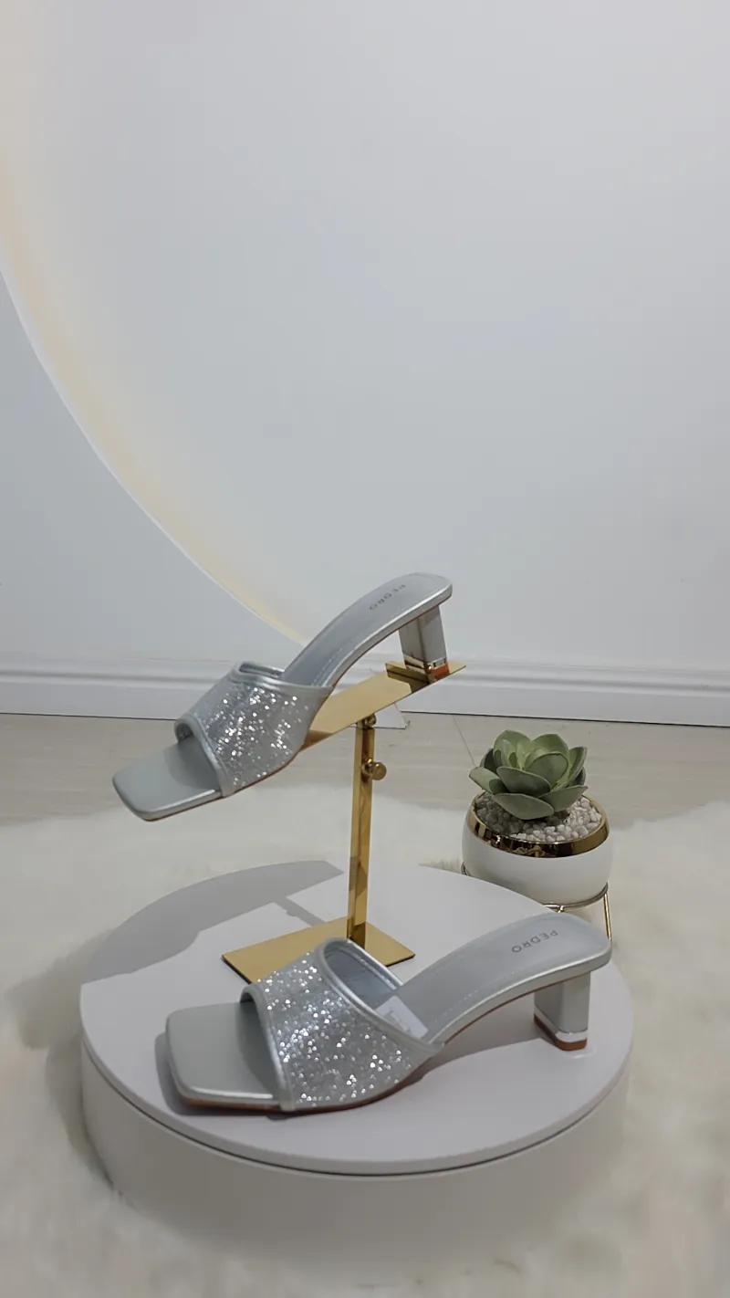 GLITTER TOP KITTEN HEEL SLIPPERS 672-5