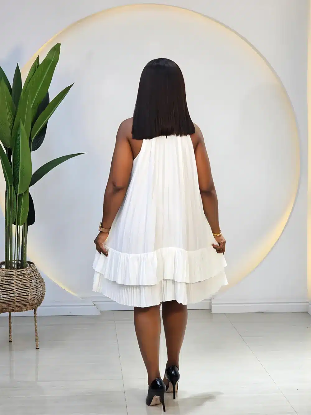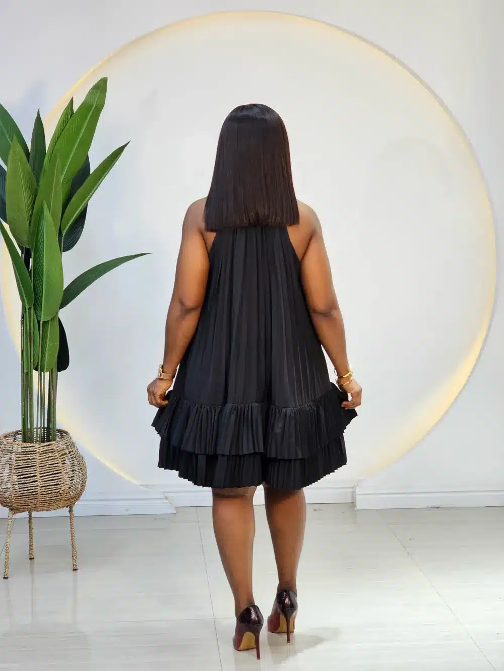 HIGH NECK DOUBLE LAYER PLEATED DRESS