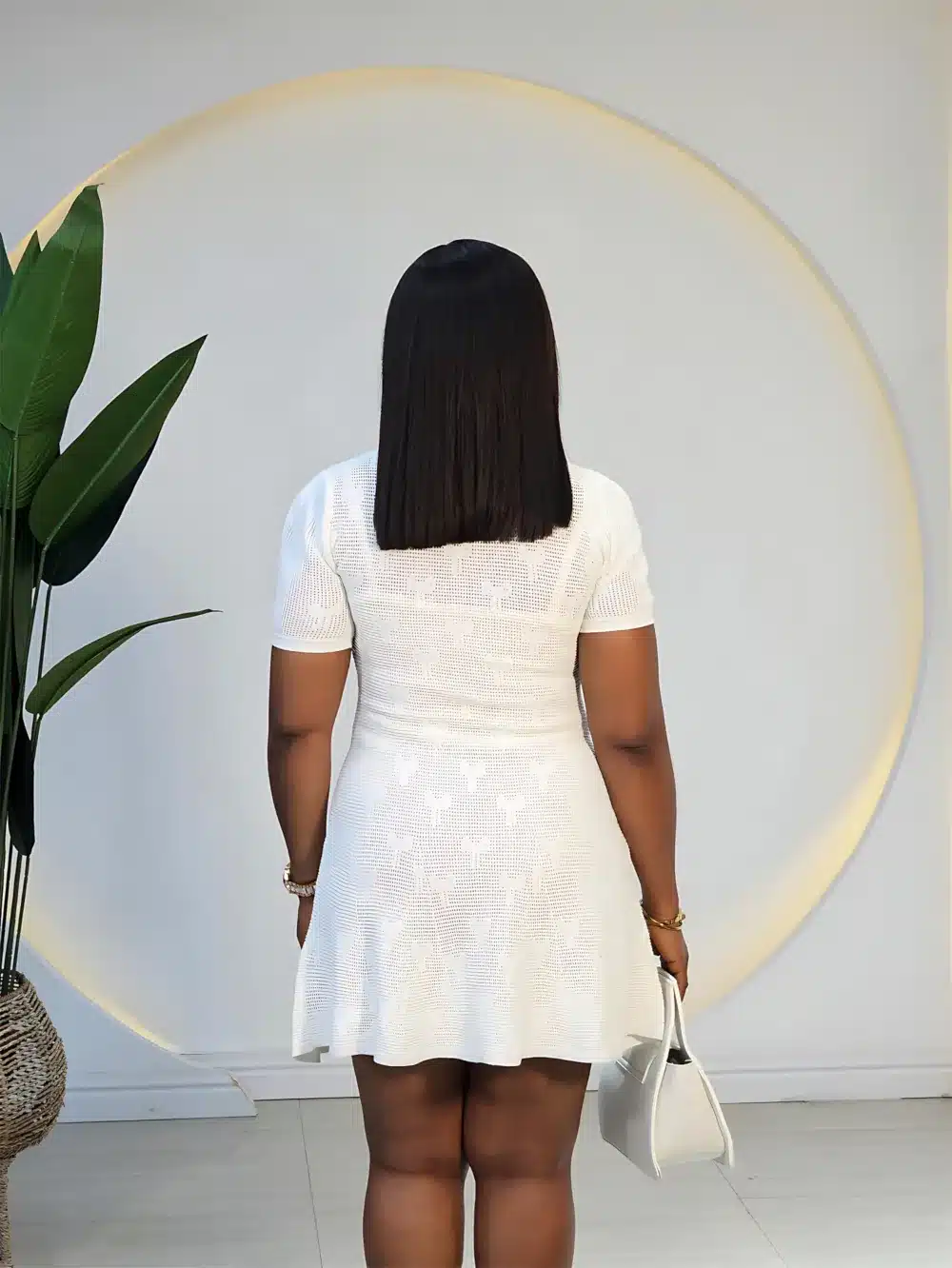 KNIT PEARL NECK DETAIL DRESS
