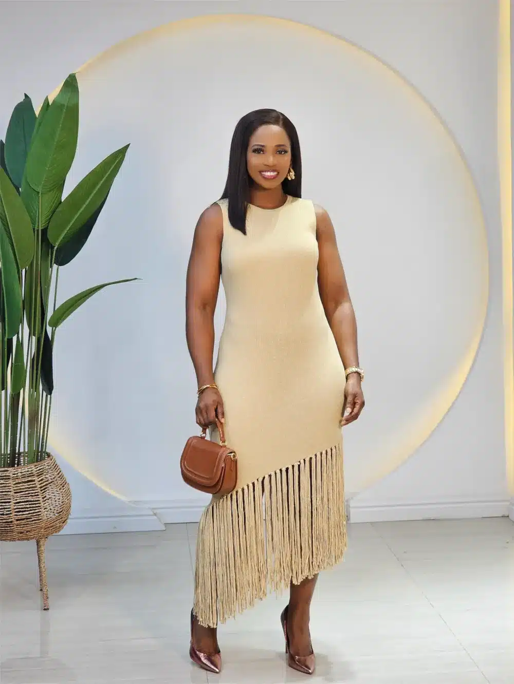 KNIT SLANT FRINGE HEM DRESS