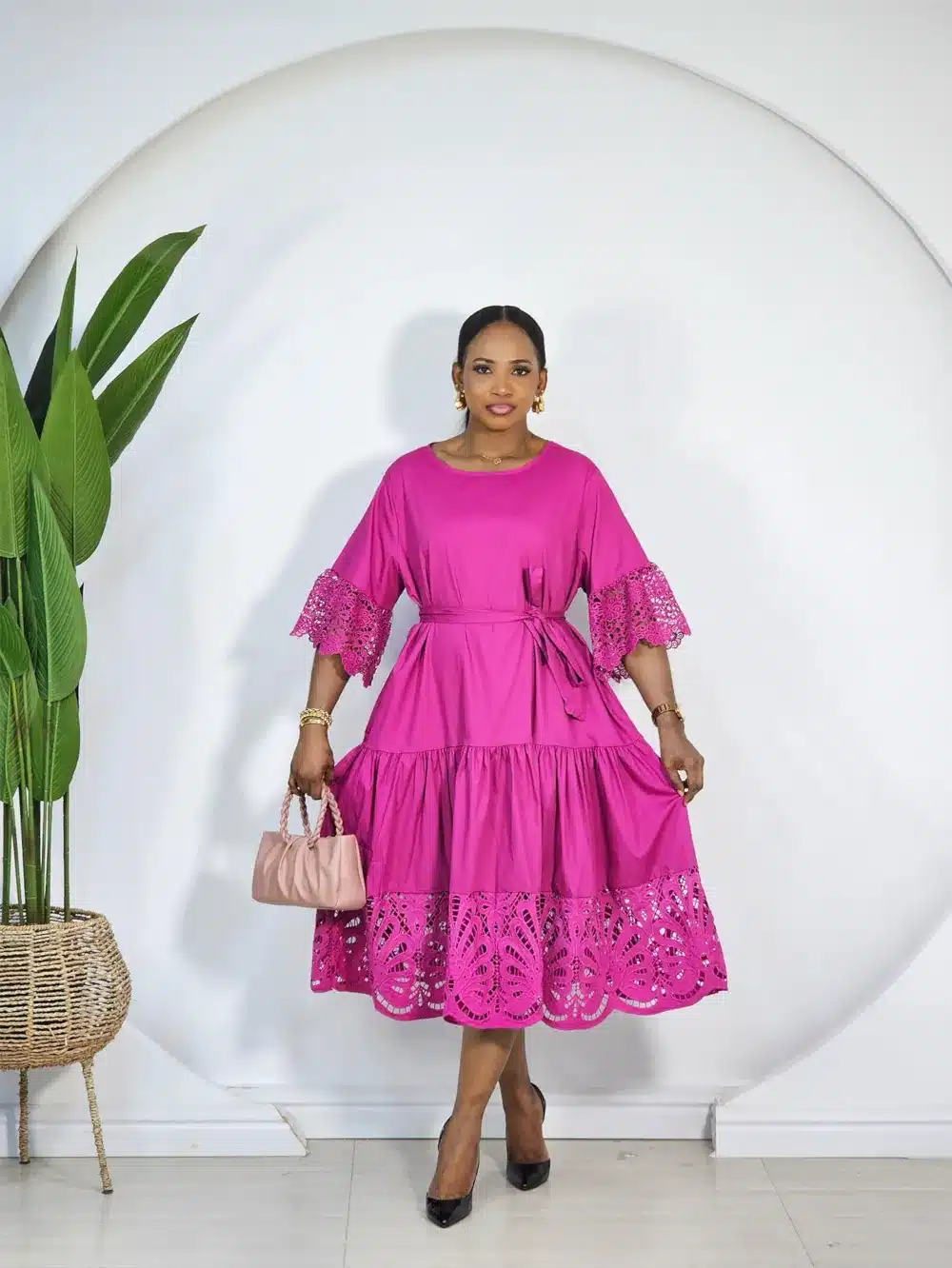 LACE HEM & BELL SLEEVE DRESS