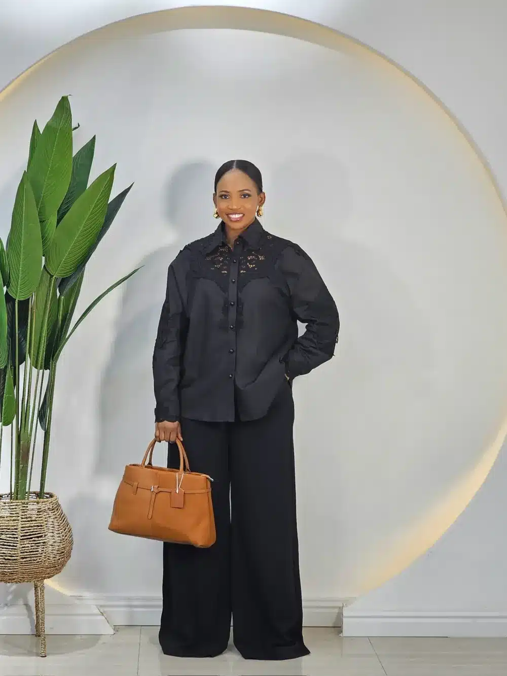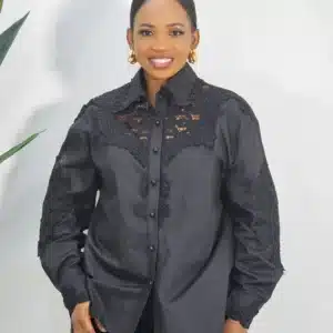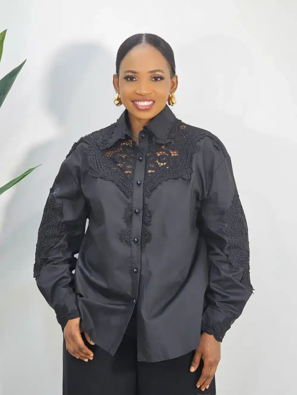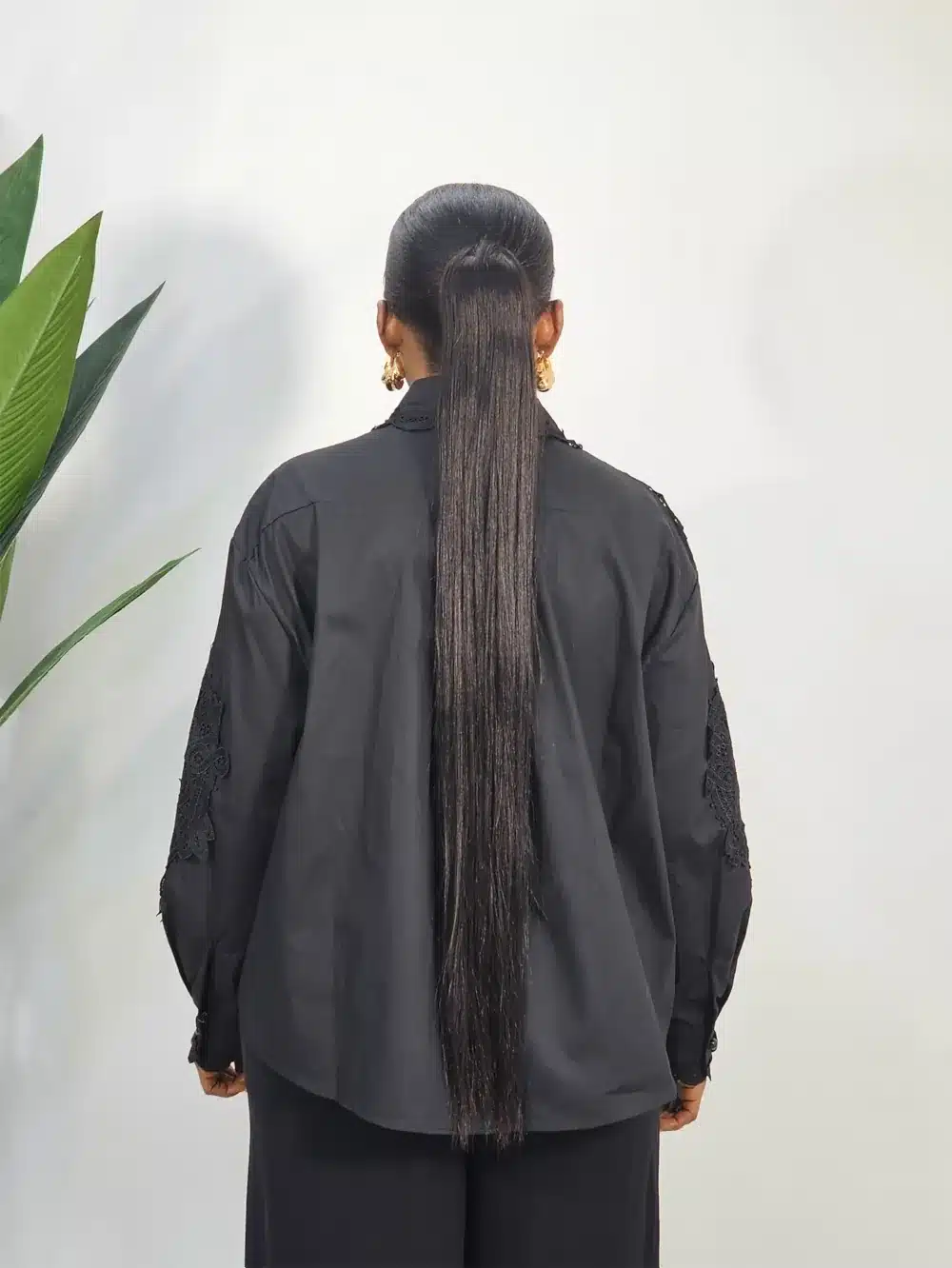 LACE INSERTED COLLAR LONG SLEEVE SHIRT