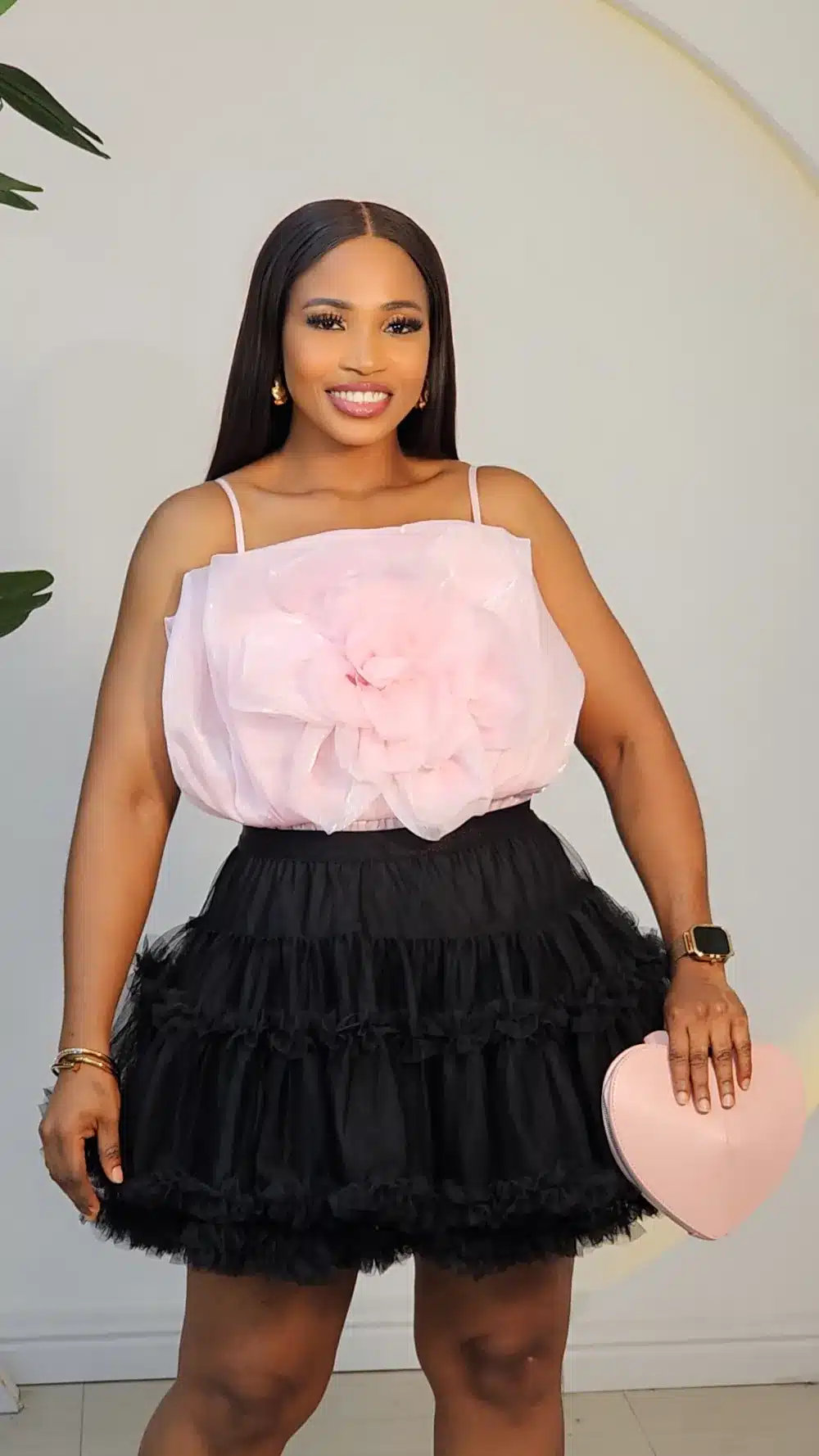 ORGANZA ROSE FRONT SPAG TOP 9716