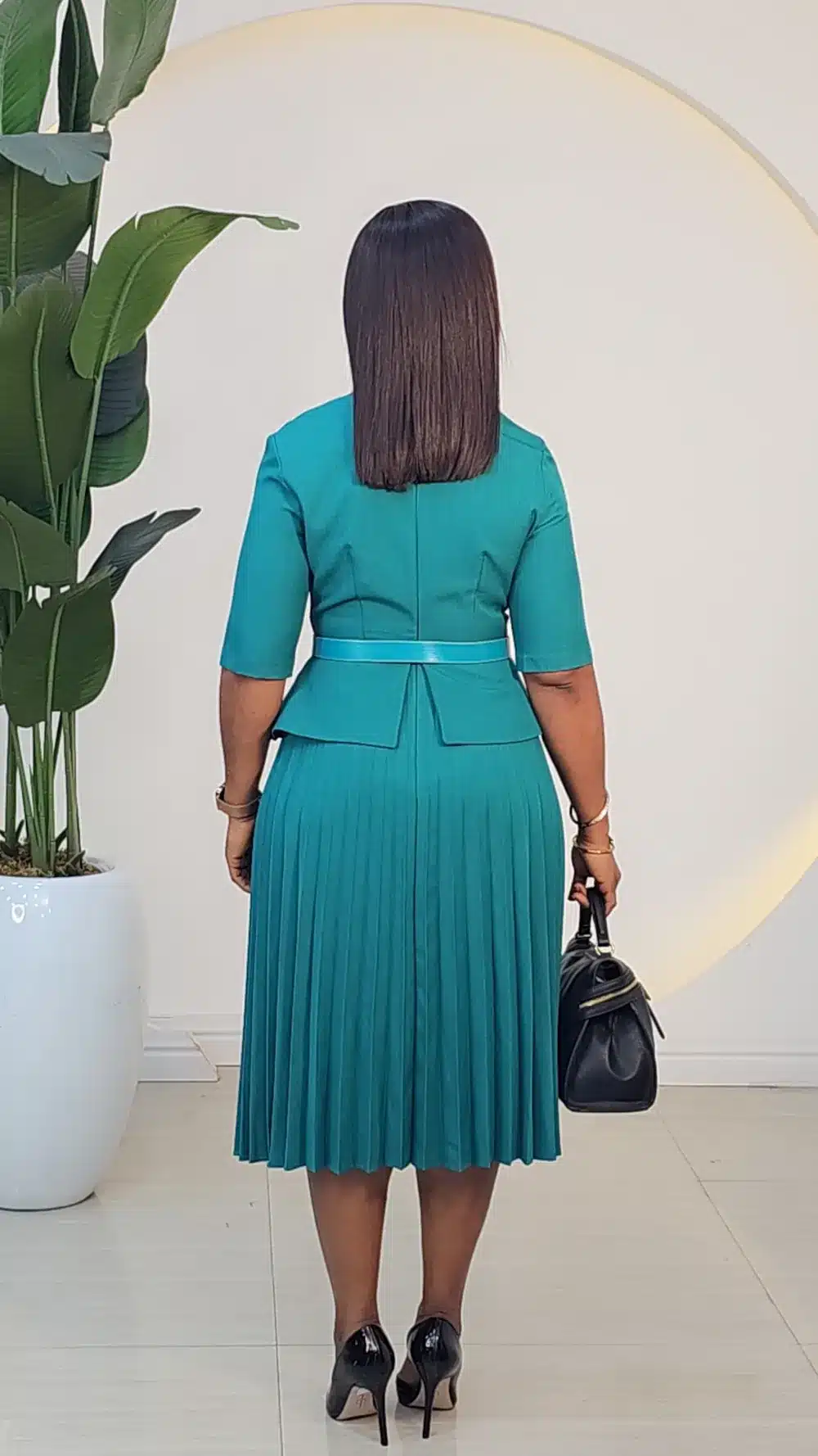 OVERLAP PEPLUM PLEAT DRESS 6391