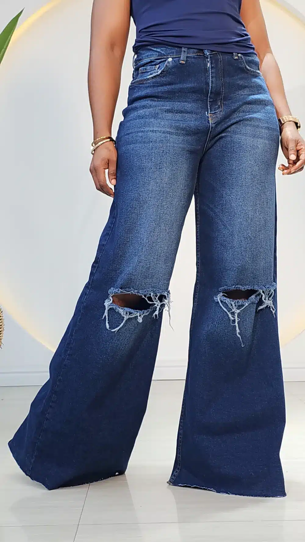 PALAZZO RIPPED MOM WIDE LEG JEANS