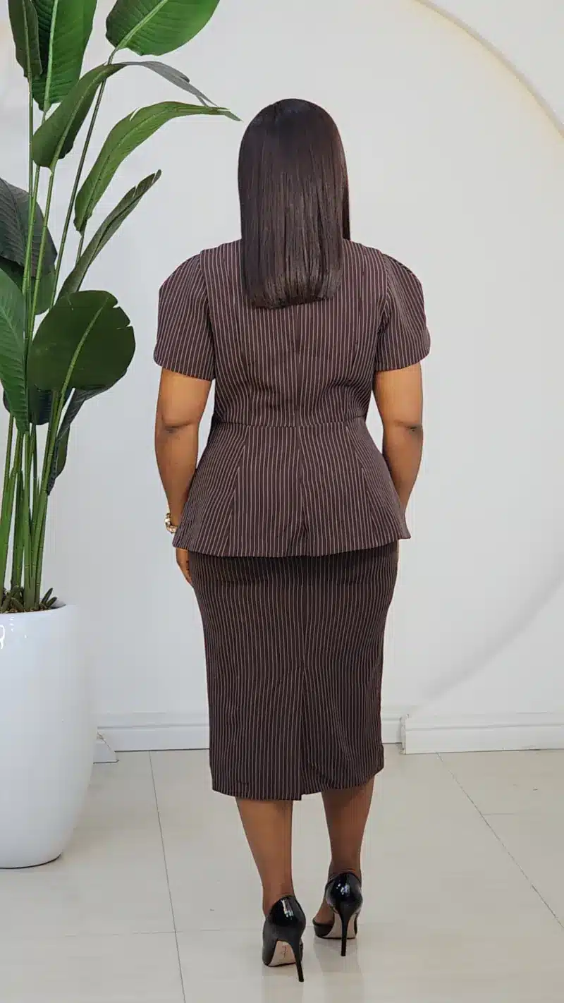 PIN STRIPE WHITE COLLAR PEPLUM DRESS L922