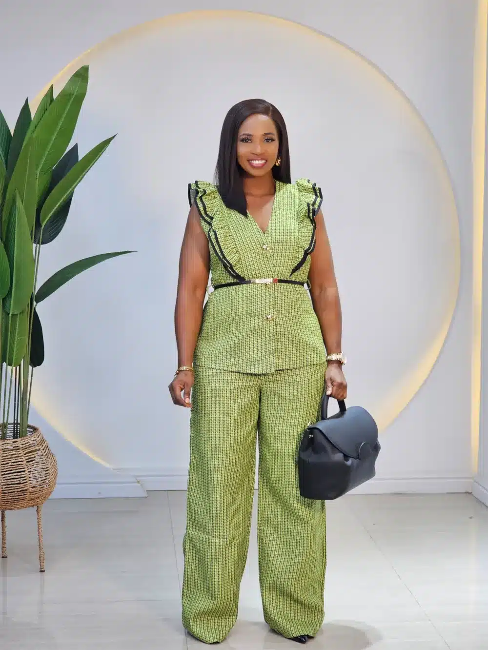 PLAID RUFFLE SLEEVE PANT SET