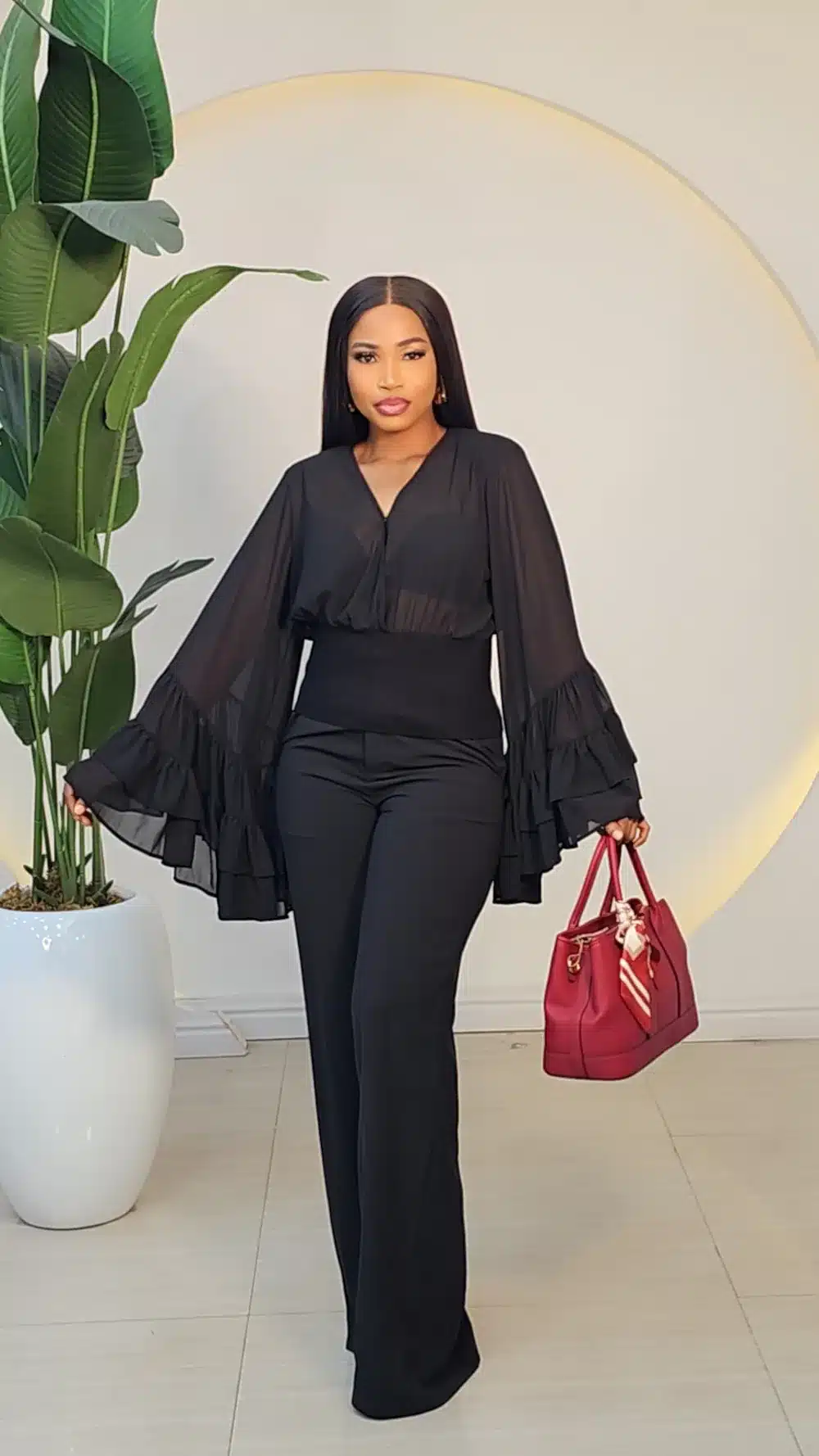 PLAIN EXAGGERATED SLEEVE BAND TOP