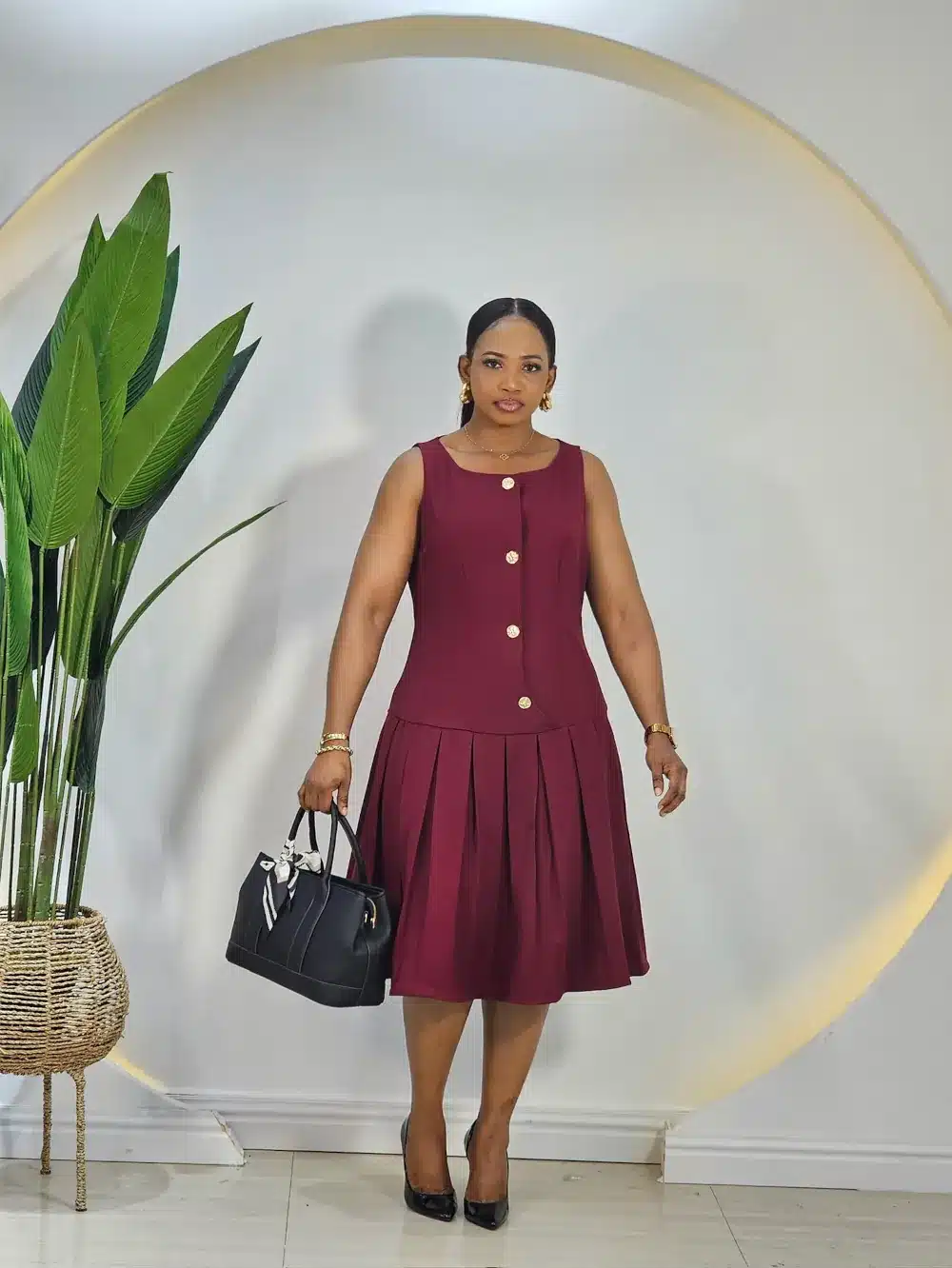 PLEATED HEM SLEEVELESS DRESS