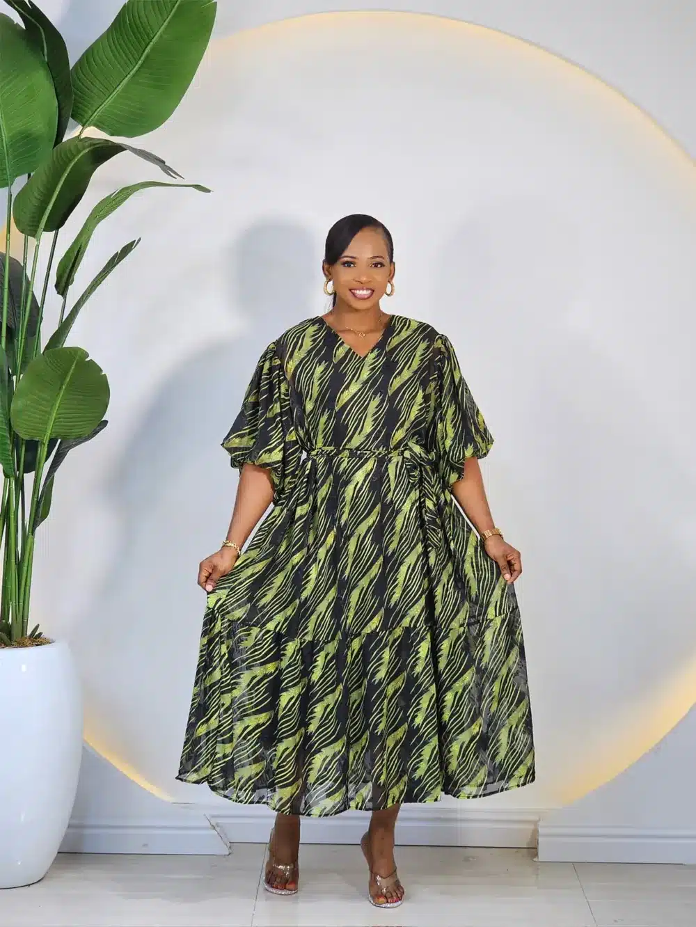 PRINT BUTTON DOWN SWING DRESS