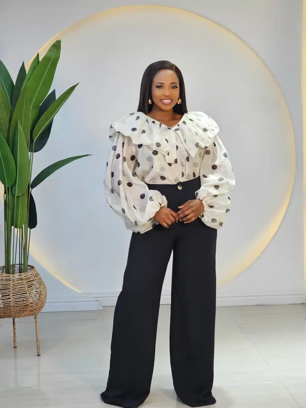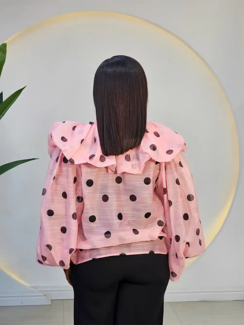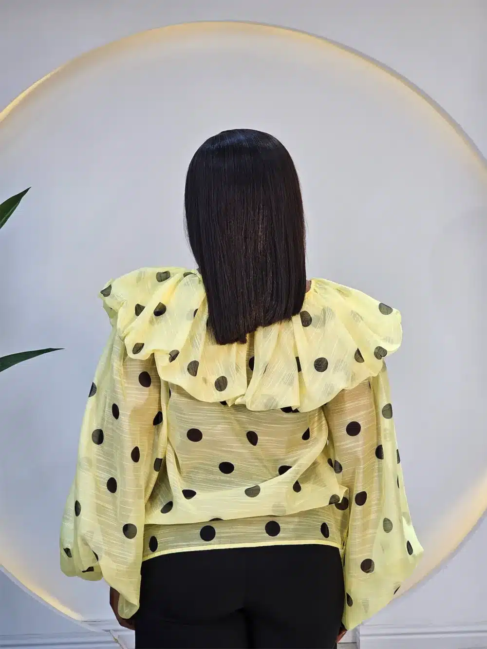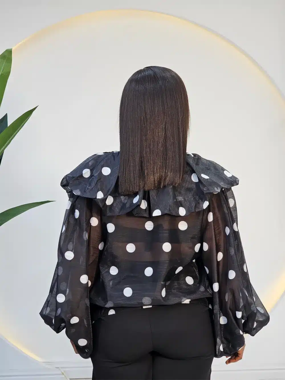 RUFFLE OFF SHOULDER POLKA DOT TOP