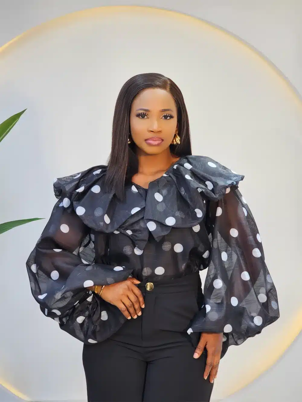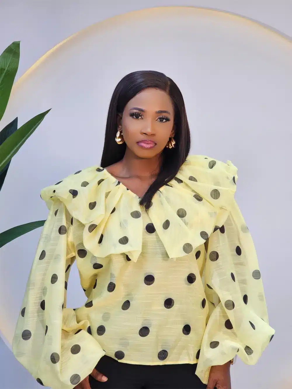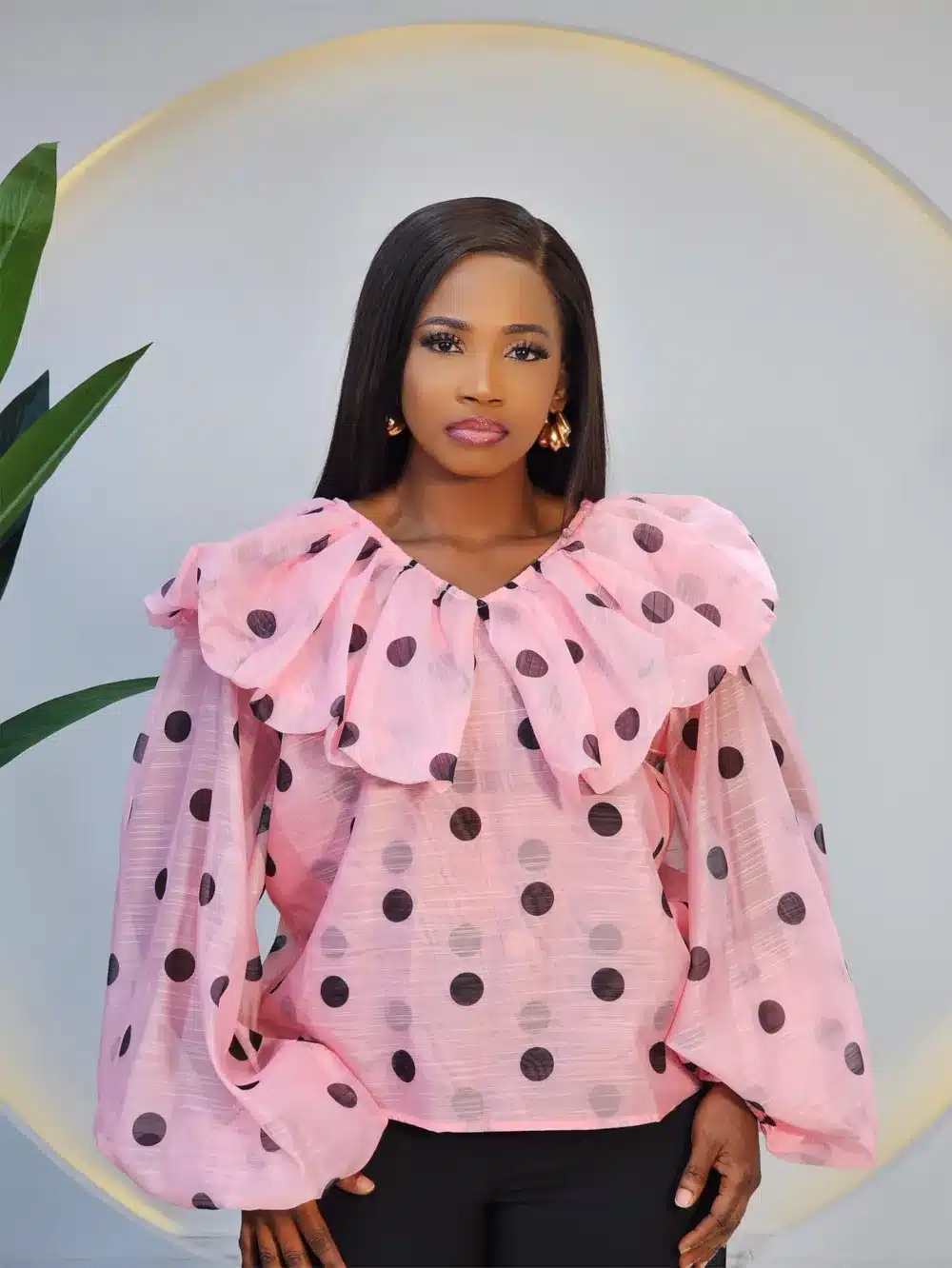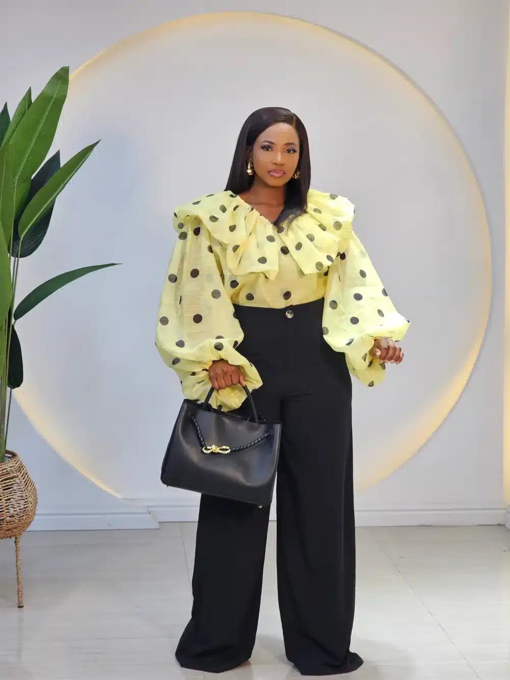 RUFFLE OFF SHOULDER POLKA DOT TOP