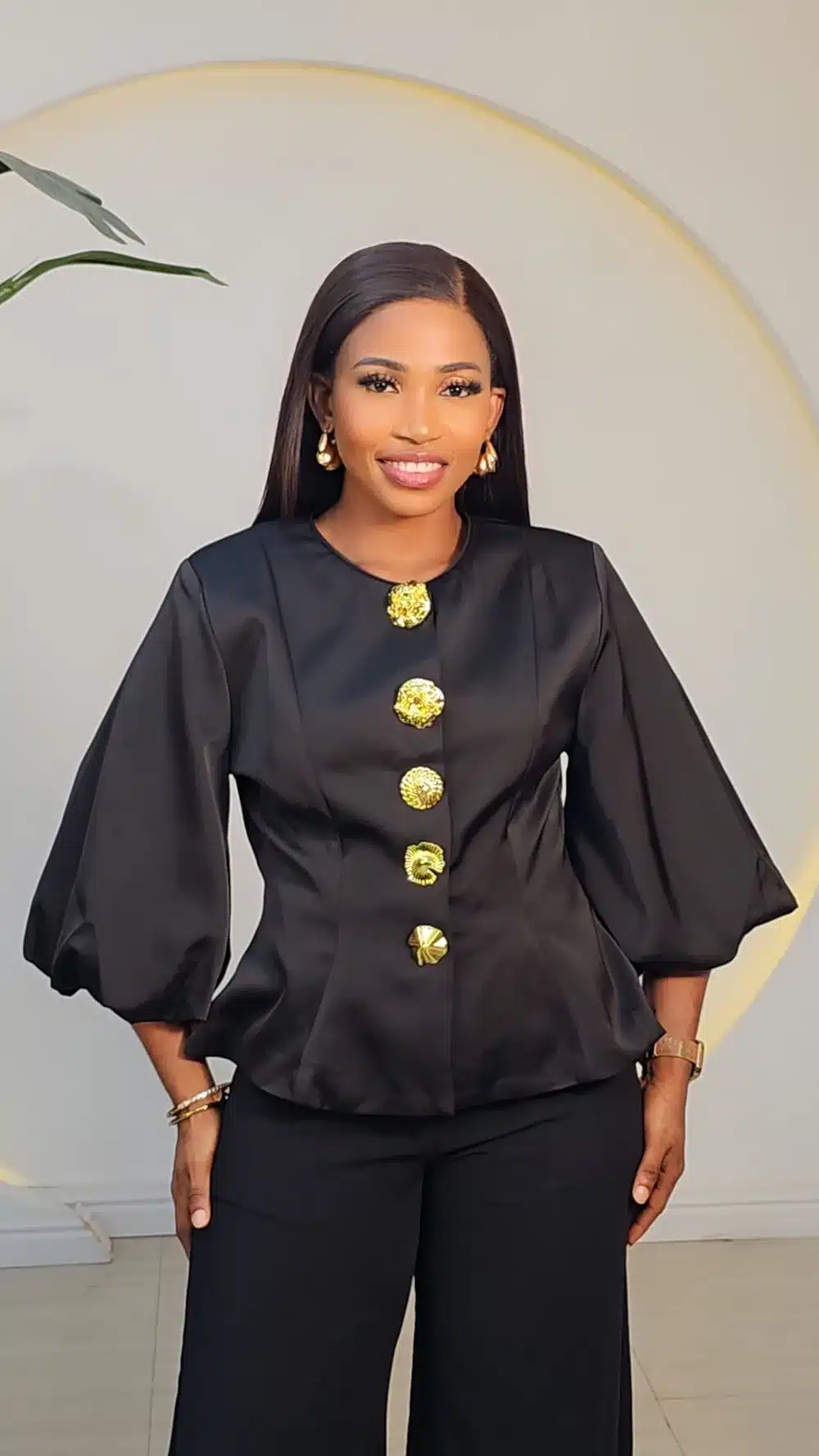 SATIN BUBBLE SLEEVE TOP 2911