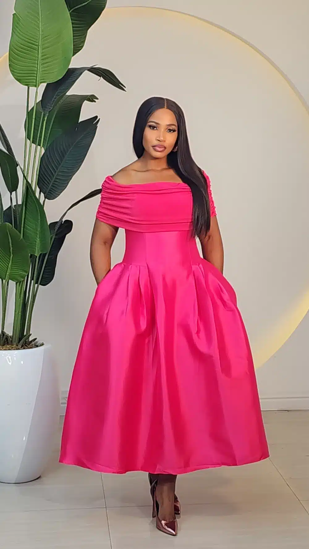 SATIN RUCH SHOULDER DRESS 6630
