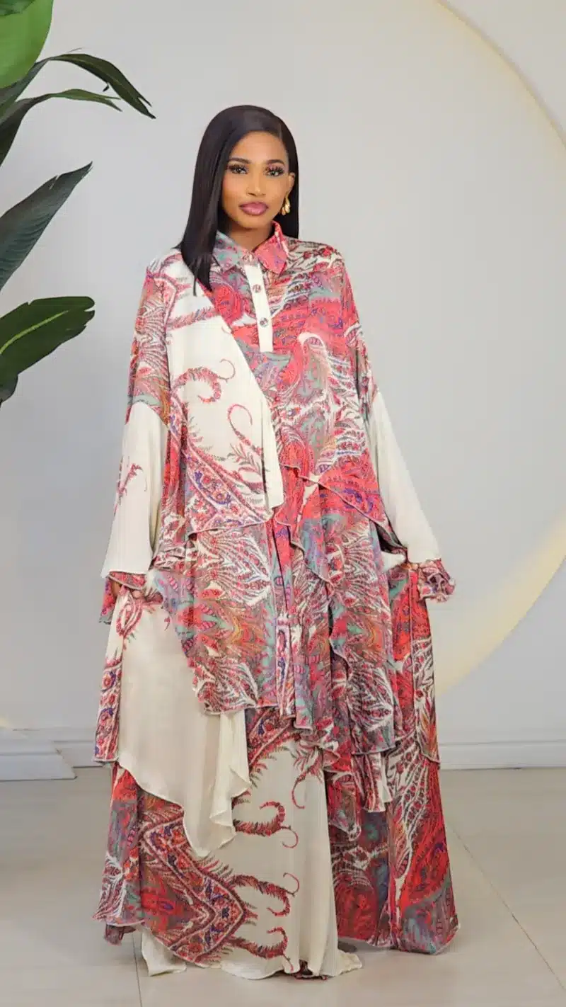 SCARF PRINT ASYMMETRIC LAYERS SWING DRESS 0704A