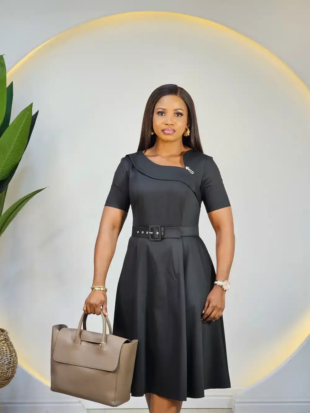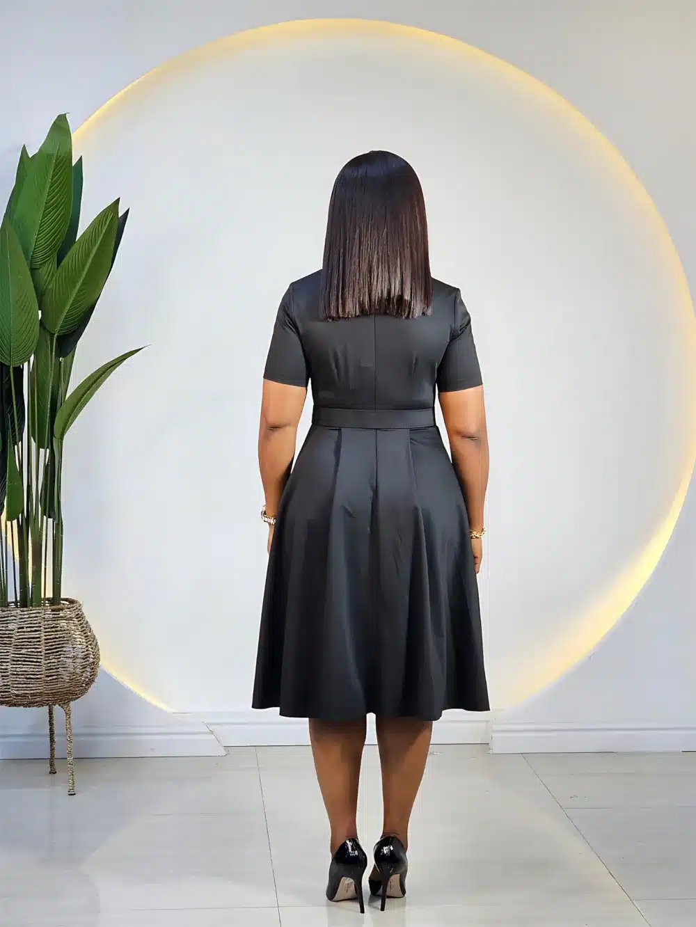 SLANT NECK CASEMENT PLEAT DRESS