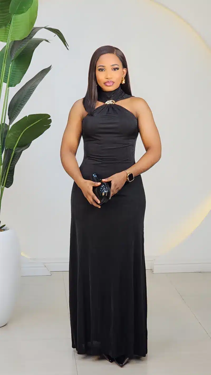 SLEEVELESS HIGH NECK BROOCH EVENING DRESS 2618