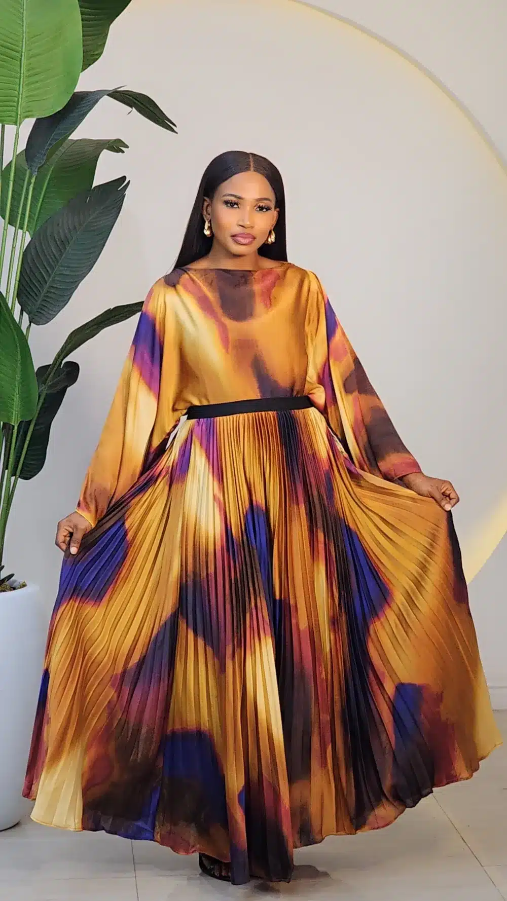 SPLASH PLEAT SKIRT & BAT SLEEVE TOP SET 683