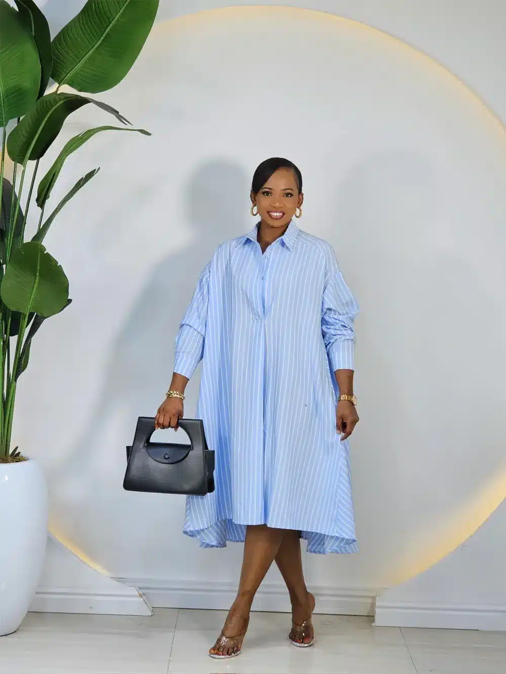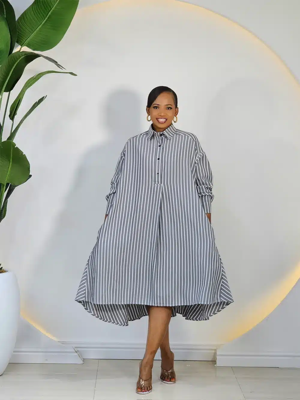STRIPE DEEP HEM SWING DRESS