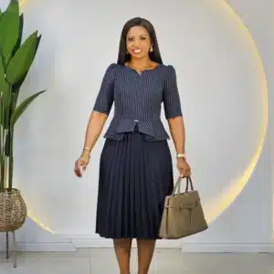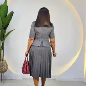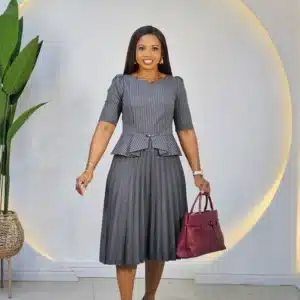 STRIPE PEPLUM PLEATED FLARE DRESS