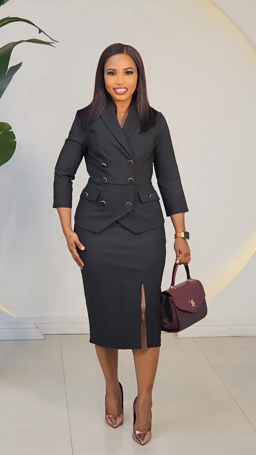 THIGH SLIT DOUBLE BREASTED BUTTON PEPLUM DRESS 25270