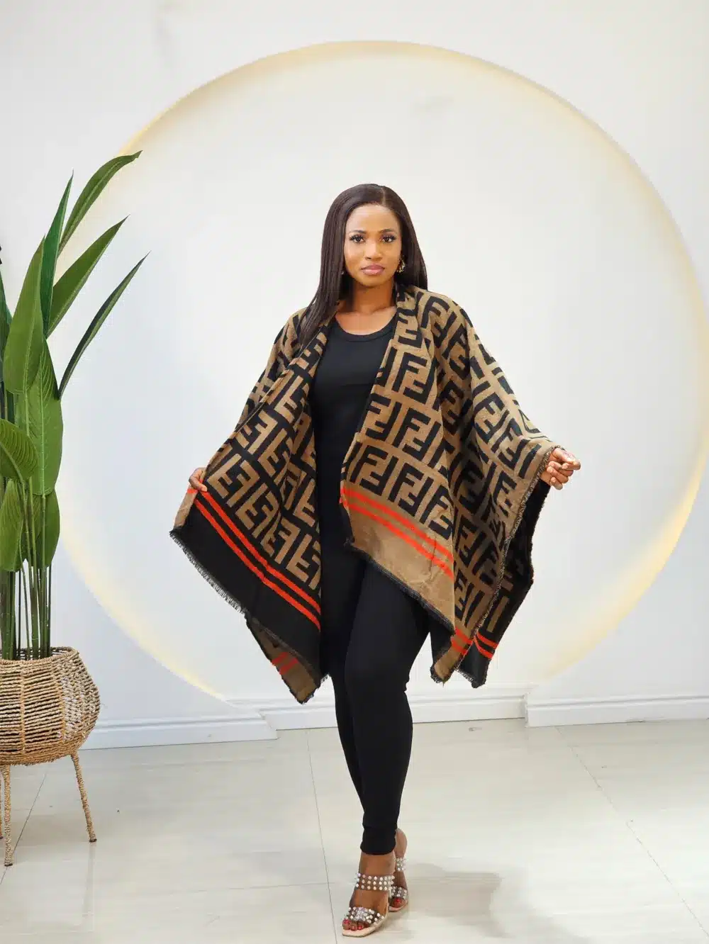 THROW-ON PONCHO 2208, FENDI, BROWN & ORANGE, ONE SIZE